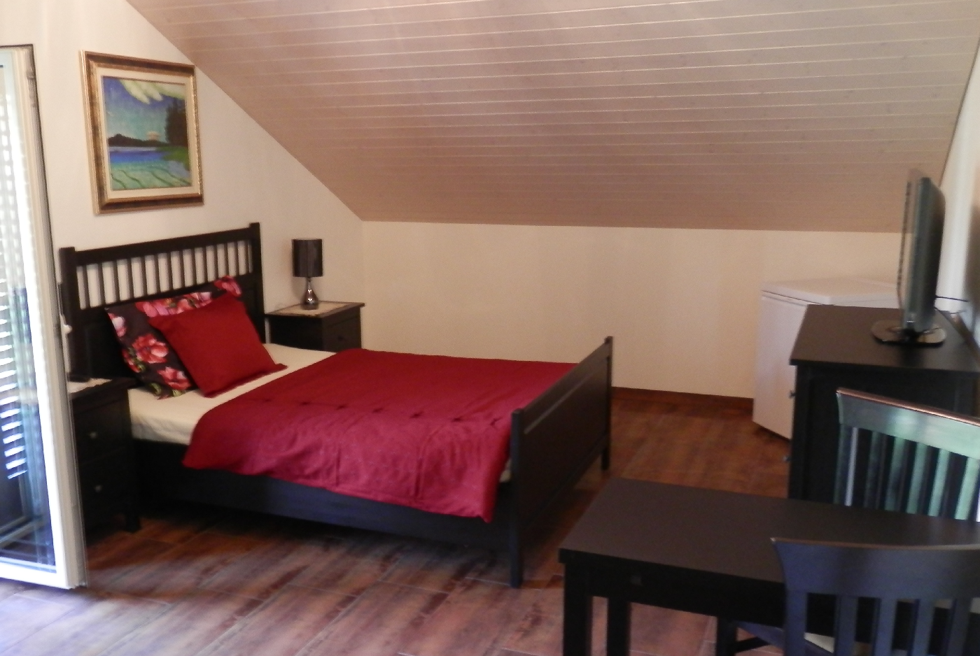 Die schöne drei- Zimmerwohnung besteht aus zwei Doppelbett-Zimmer und ein Zimmer mit zwei Einzelbetten, ein Bad mit Dusche und Waschraum. Die beiden Doppelzimmer haben Zugang zu einer Terrasse mit Panoramasicht auf die Landschaft. Alle Zimmer sind mit LCD-Satellitenfernseh, Minibar und Wifi-Internet ausgestattet, das Bad verfügt über eine Waschmaschine mit Tumbler.