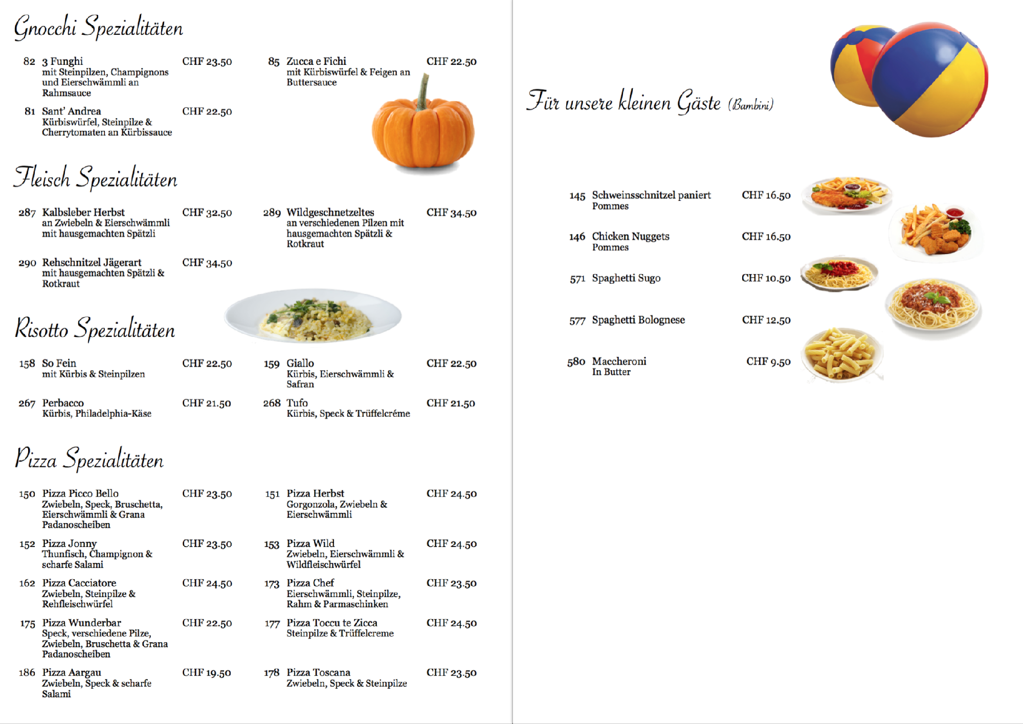 Zusätzlich kann man im Restaurant im Erdgeschoss preisgünstige Menüs konsumieren (Fr. 20.- /Person für ein Zweigang-Menue)